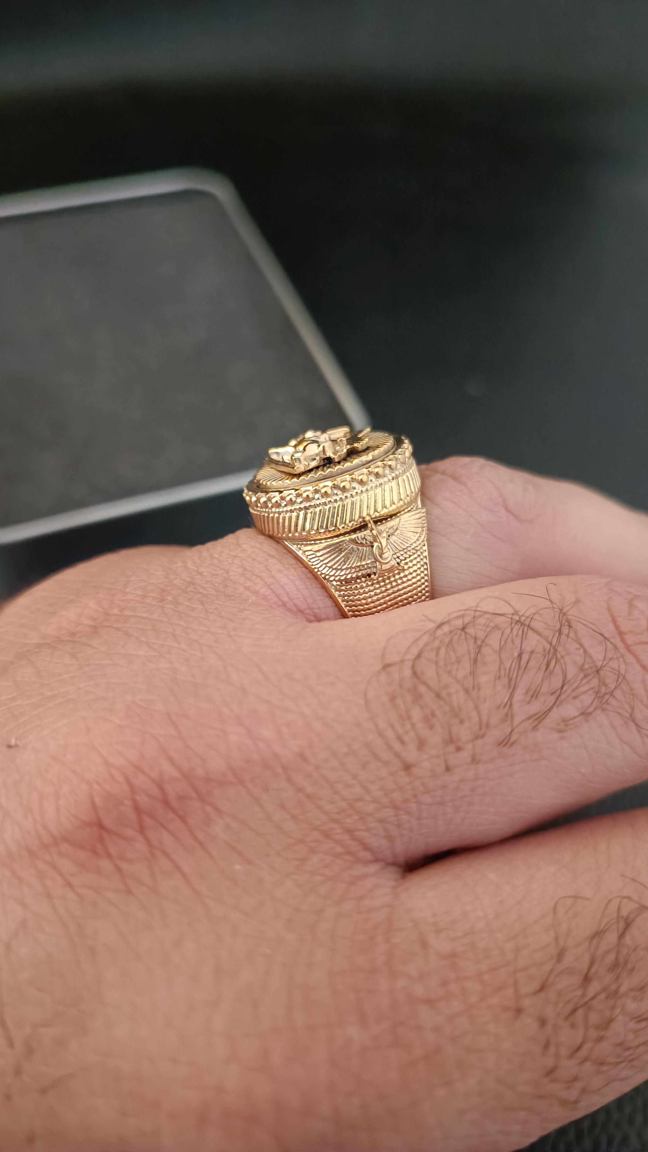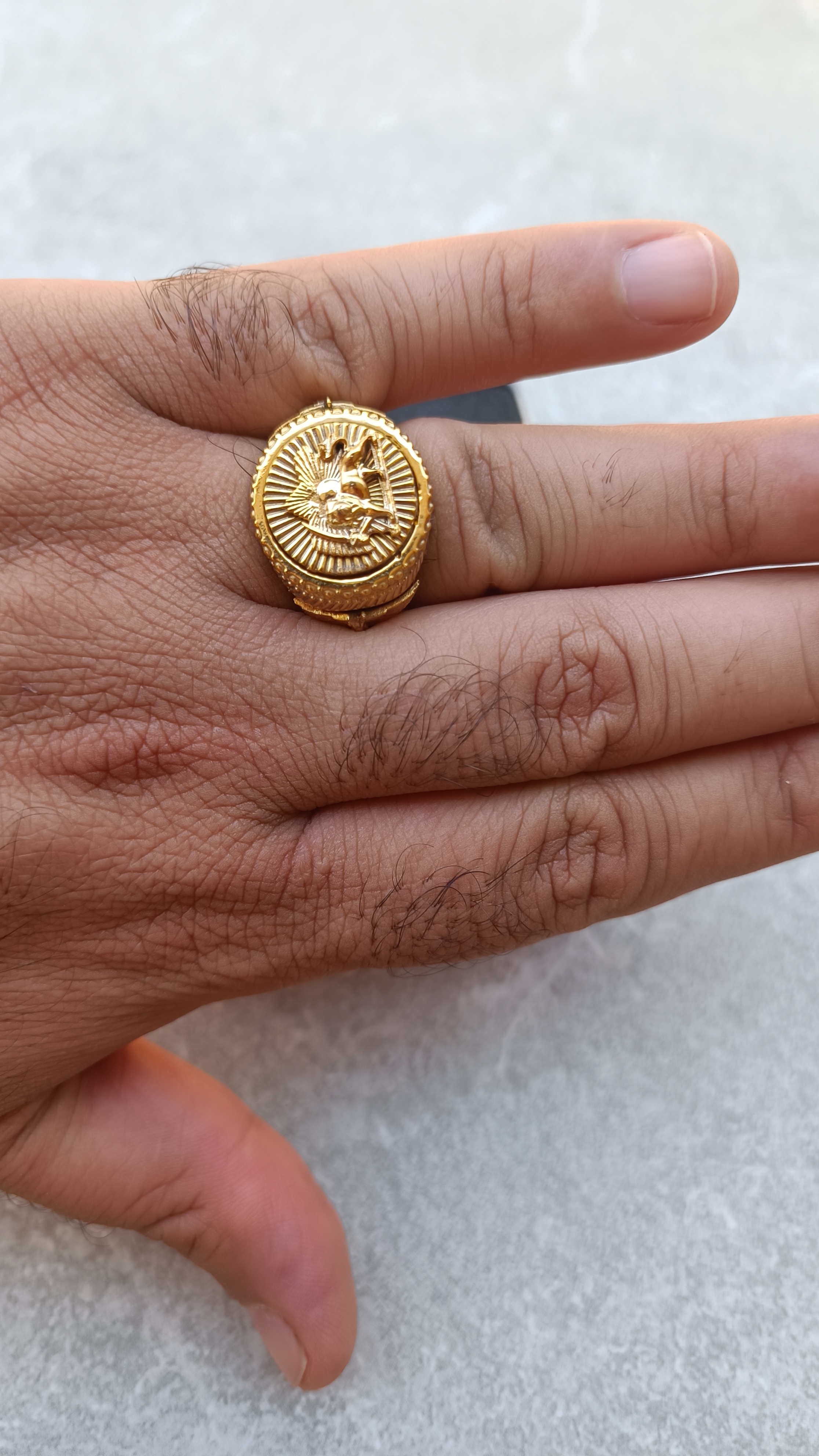 انگشتر شیر خورشید استیل رنگ طلایی جنس استیل با ابکاری طلا طرح شیر خورشید برش لیزر بسیار خوش تراش سایز بندی 9.10.11